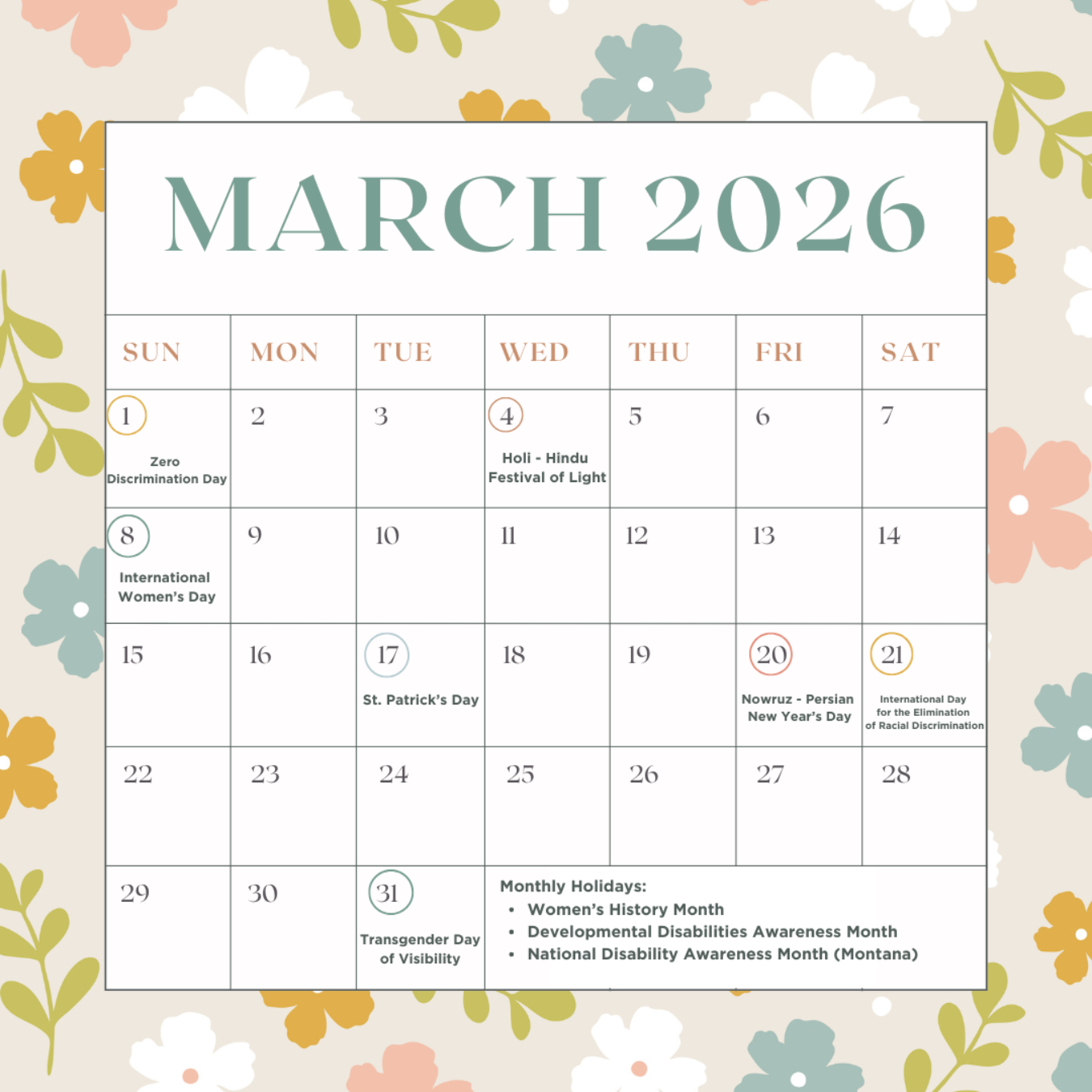 Holidays this month
